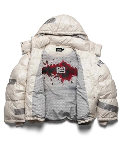 En el interior del forro, la prenda incluía una gran mancha roja que simulaba sangre, un detalle que intensificó la indignación.