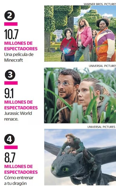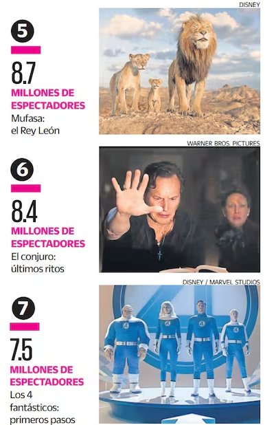 En el top cinco de las más vistas del año, tres pertenecen a esa modalidad, siendo encabezada por "Lilo & Stich", cuya versión original fue lanzada hace casi tres décadas. El live action superó los 17 millones de boletos vendidos, seguida por una película de "Minecraft", con Jack Black, con 10 millones.