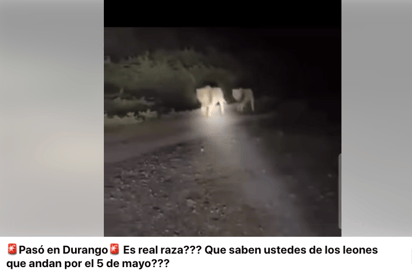 Un inusual hecho captado en un video, aparentemente en Durango, ha sorprendido a los habitantes de la ciudad, pues en este se puede observar a dos leones caminando por un camino de terracería, asegurando que el material habría sido grabado en el poblado 5 de Mayo.