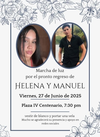 Tras la desaparición de los jóvenes, y a cuatro días de que fueron contactados por última vez, familiares y amigos convocaron a una “marcha de luz”, con la esperanza de que Helena y Manuel regresen pronto a casa.
