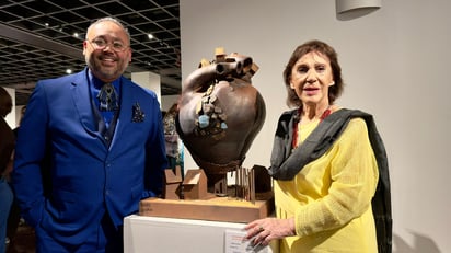 Grijalva, por su parte, aporta su maestría en barro y modelado, dando forma a una pieza que combina cerámica, pintura y metal en un cuerpo escultórico de gran formato, con un peso aproximado de 50 kg y dimensiones de 80 x 50 cm.