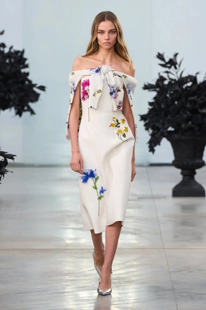 Este largo atemporal vuelve con cortes que realzan la figura femenina. En pasarelas de marcas como Blumarine, Etro y Carolina Herrera, los vestidos midi destacan por siluetas escultóricas y detalles en la cintura y el escote que aportan refinamiento.