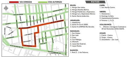 Debido al cierre por la estrategia de convivencia denominada “Durango de rol” algunas rutas del transporte público modificarán sus trayectos en el transcurso de la mañana y parte de la tarde de este domingo.
