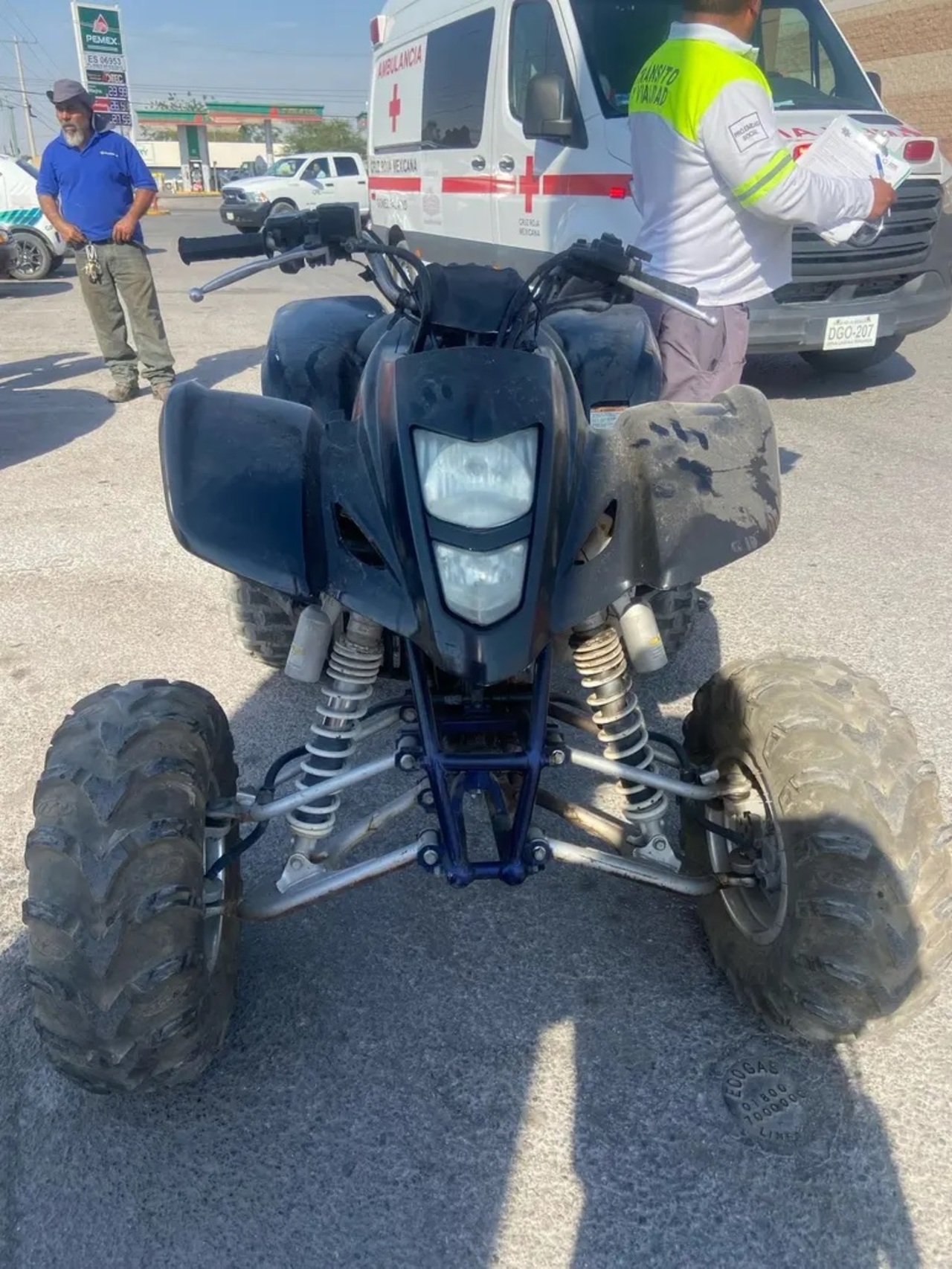 El incidente sucedió al filo de las 17:00 horas, en las instalaciones de Alsuper Filadelfia. Una cuatrimoto de la marca Suzuki, modelo 2014, conducida por Miguel, de 45 años de edad, se impactó contra un automóvil de la marca Chevrolet, línea Ónix, color gris, el cual era tripulado por Norma, de 46 años de edad.