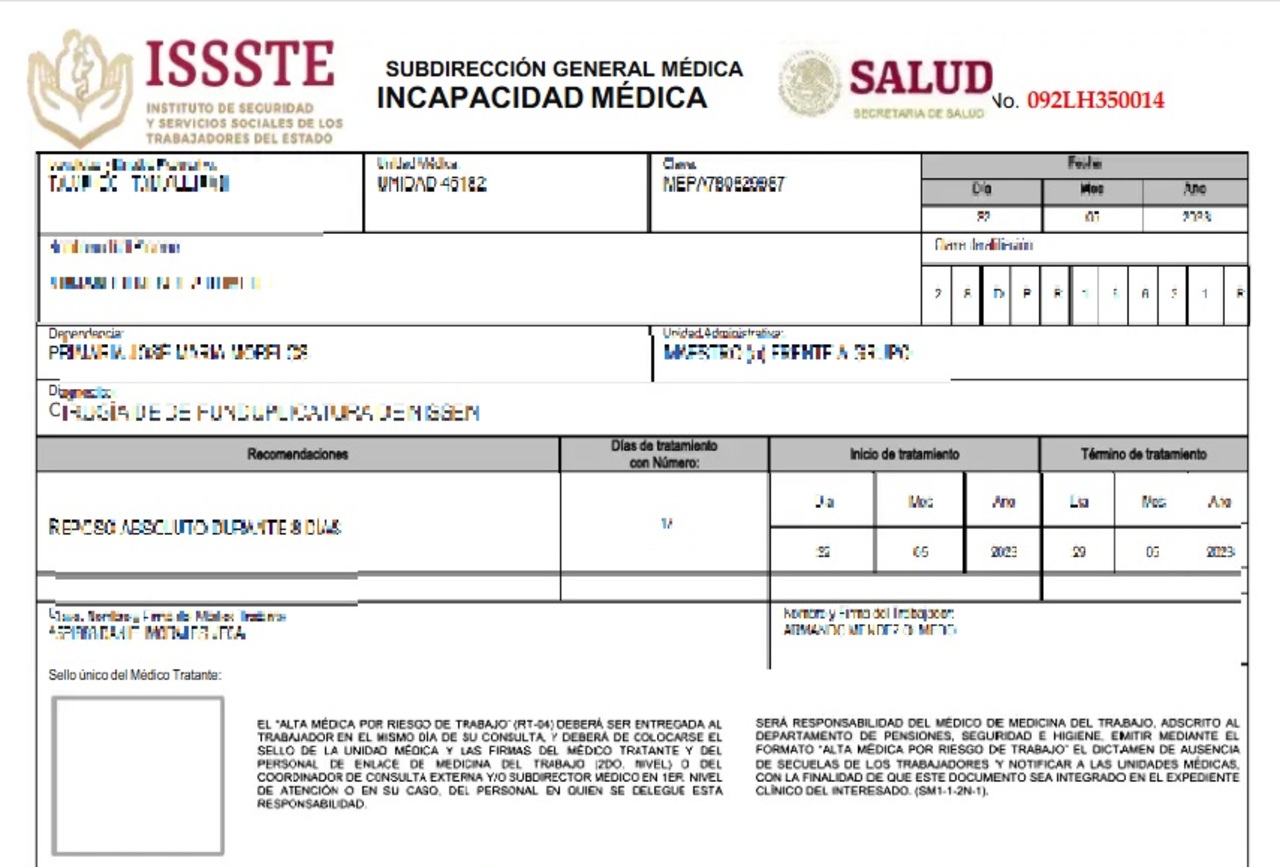 Vinculan a proceso en Durango a mujer por uso de licencia médica falsa del ISSSTE