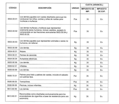 El impuesto aplica a una amplia gama de productos que tradicionalmente se importan para abastecer el mercado nacional: desde muñecas y muñecos, hasta pelotas, naipes, coches eléctricos de juguete, inflables, patines, trampolines y piscinas infantiles. En la práctica, cada unidad que entre al país deberá pagar un 35% adicional de impuesto de importación.