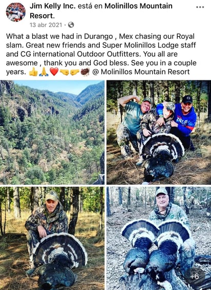 “Qué buen tiempo tuvimos en Durango, México, persiguiendo nuestro Royal slam. Grandes nuevos amigos y personal de Super Molinillos Lodge y CG International Outdoor Outfitters. Todos ustedes son increíbles, gracias y que Dios los bendiga. Nos vemos en un par de años”, escribió en aquel entonces.