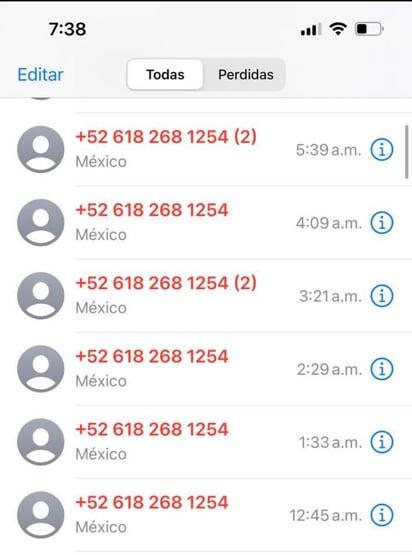 Estas llamadas, de acuerdo al denunciante, se realizaron a través de números telefónicos con lada de Durango, específicamente por el 618-268-1254 y 618-106-7386.