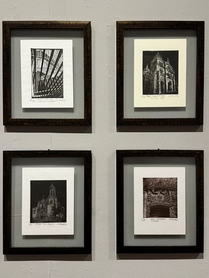 Las piezas reunidas en “La arquitectura en Durango” presentan un nivel de detalle que podría confundirse con fotografía, aunque Mendoza rechaza cualquier intento de imitación literal. Su objetivo es reinterpretar los edificios y rincones emblemáticos del estado desde la expresividad del buril.