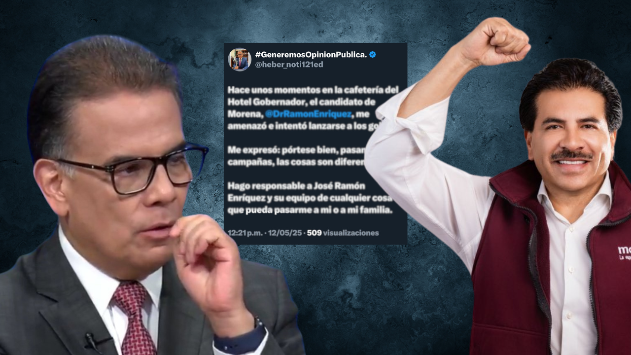 Heber García Cuéllar, periodista y director de Canal 12 Durango, denunció públicamente que el candidato de Morena a la alcaldía de Durango, José Ramón Enríquez Herrera, lo amenazó e intentó golpearlo.