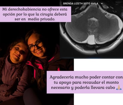 La cirugía tendrá un costo elevado, por lo que la joven duranguense abrió su corazón y solicitó el apoyo de amigos, familiares y ciudadanía en general, para tratar de juntar la mayor cantidad de dinero posible.