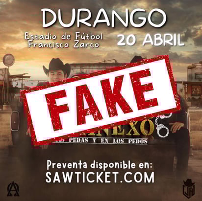 Sin embargo, todo parece indicar que Prófugos del Anexo no llegará a Durango, o al menos no próximamente, pues ninguno de los dos artistas ha confirmado una fecha en el estado, por lo que la preventa de boletos a través de la página SawTicket, que promocionó el evento en redes sociales, sería un fraude.