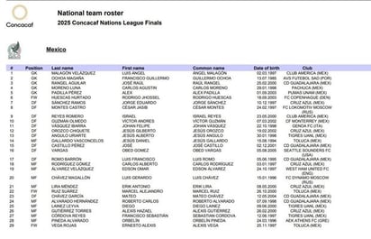 Nombres como Guillermo Ochoa, Hirving "Chucky" Lozano, Alexis Vega, Santiago Giménez y Henry Martín figuran en la lista, todos ellos mundialistas con el Tricolor en Qatar 2022.