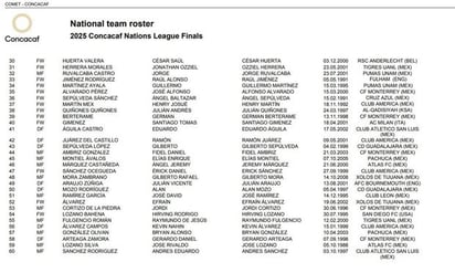 La prelista del seleccionador mexicano Javier Aguirre fue publicada por la Concacaf, dicha convocatoria cuenta con 60 nombres de futbolistas mexicanos, pero solo 23 resultarán reclutados para representar a la Selección Mexicana en Nations League. El jueves 20 de marzo, México se medirá ante Canadá en las semifinales de dicha competición.