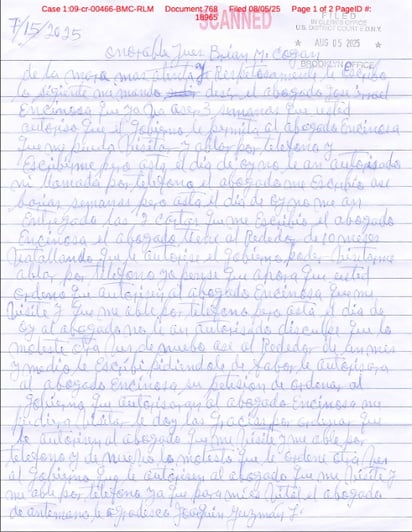 Reaparece 'El Chapo' Guzmán con carta dirigida a juez Brian Cogan; ¿qué dice?