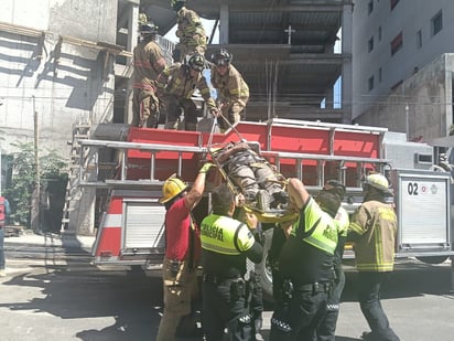 Una vez en el nivel adecuado, fue colocado en una camilla tipo canastilla y finalmente descendido por la escalera telescópica de la unidad escala de Bomberos.