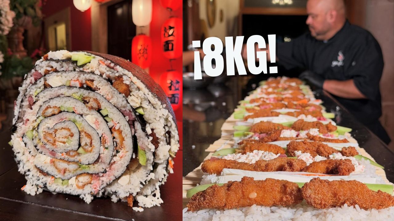 Un restaurante de Durango sorprendió a sus comensales con la creación de un sushi gigante que alcanza un peso superior a los 8 kilogramos y está pensado para compartir entre 15 personas.