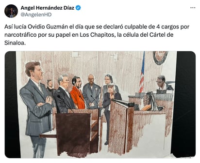 Esta imagen, que solo es un dibujo que se realiza mientras se lleva a cabo la audiencia, pudiera ser la última que se tendría de Guzmán López, pues a partir de hoy forma parte del programa de Testigo Colaborador, y esto podría implicar una nueva identidad.