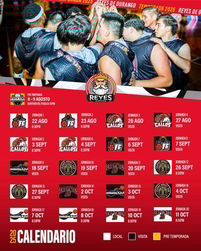 Con la mira puesta en un inicio sólido, los Reyes de Durango presentaron su calendario oficial para la temporada 2025 del Circuito de Baloncesto del Pacífico (Cibapac). El equipo buscará consolidar una propuesta táctica más agresiva y sostenida, con la intención de posicionarse entre los contendientes serios desde las primeras jornadas del torneo.