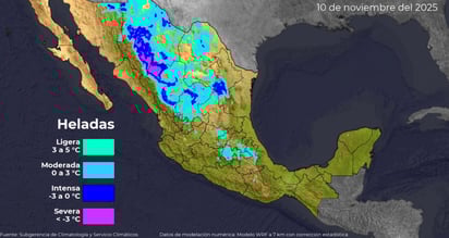 El frente ingresará por el noreste del país y se desplazará hacia el norte, generando temperaturas negativas en varios estados. En Durango, sus efectos comenzarán a sentirse desde el lunes por la mañana.
