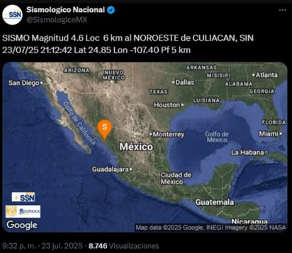 Temblor de 4.6 grados sorprende a Culiacán, Sinaloa; sin reportes de daños