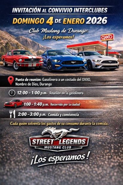 En un afán por fomentar la convivencia entre los aficionados de autos Mustang, un grupo de personas se ha organizado para realizar un evento sin lucro en el municipio de Nombre de Dios, Durango.