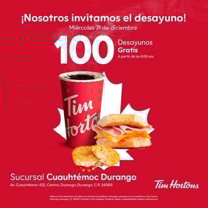Te puede interesar: Tim Hortons llega OFICIALMENTE a Durango; ¿qué productos ofrece la cafetería?