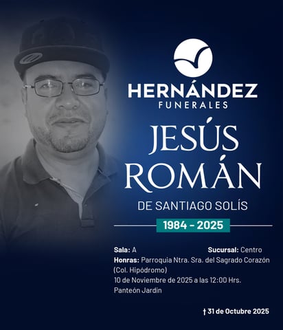Jesús Román es velado en Funerales Hernández, sucursal Centro, mientras que sus honras serán en la Parroquia Nuestra Señora del Sagrado Corazón, en la colonia Hipódromo, el 10 de noviembre a las 12:00 horas y se despide en el Panteón Jardín.