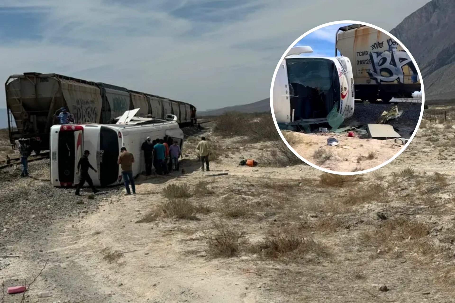 Los hechos ocurrieron alrededor de las 12:25 cuando un tren de carga chocó contra un autobús de pasajeros en el municipio de Cuatro Ciénegas en el cruce ferroviario.