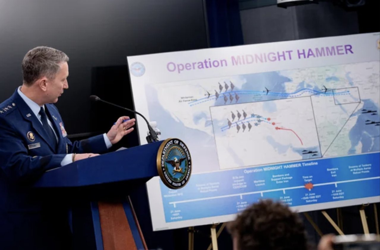 En la operación "Martillo de Medianoche" intervinieron siete bombarderos furtivos B-2 que volaron 18 horas y los sistemas de misiles iraníes no los detectaron, precisó el jefe del Estado Mayor Conjunto Dan Caine.