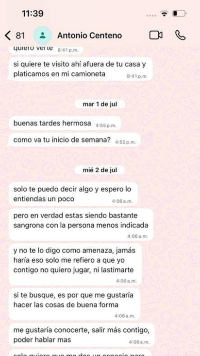 En agosto del presente año, después de que se reactivaran los mensajes, la denunciante respondió “No gracias”, lo que ocasionó que el acosador la empezara a cuestionar y a criticar por no aceptar, hasta que finalmente la terminó por insultar.