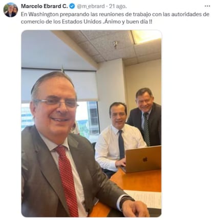 El pasado 21 de agosto, el titular de Economía Marcelo Ebrard informó que se encontraba en Washington como parte de las reuniones de trabajo con las autoridades de comercio de Estados Unidos.