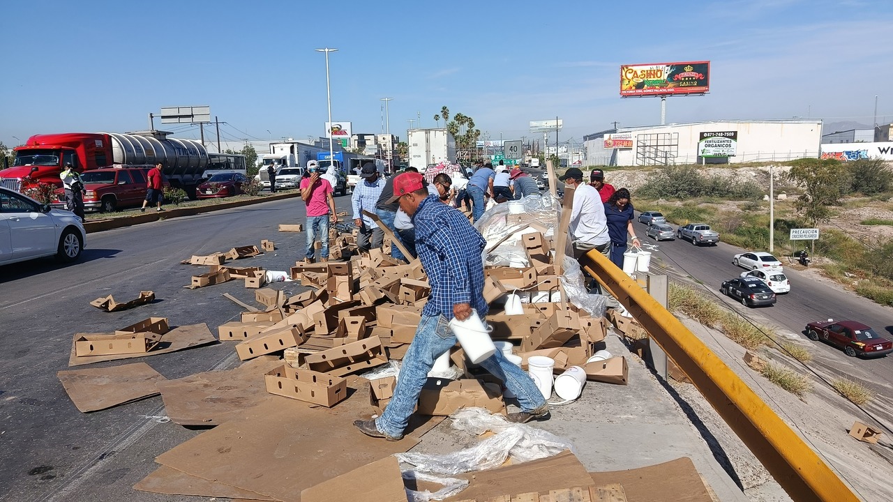 Un desperfecto mecánico en un tractocamión provocó el desprendimiento de su caja refrigerada durante la madrugada de este viernes en el bulevar Ejército Mexicano, en Gómez Palacio, Durango, incidente que derivó en actos de rapiña por parte de decenas de personas.