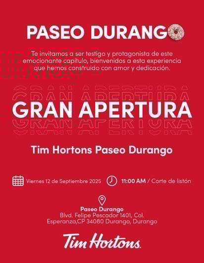 Desde hace meses, los rumores de la llegada de Tim Hortons a Durango se hicieron presentes y no fue hasta julio de 2025 cuando la cadena canadiense abrió sus puertas en la capital.
