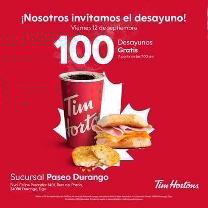 ¡Ya hay fecha! Tim Hortons abrirá su sucursal de Paseo Durango
