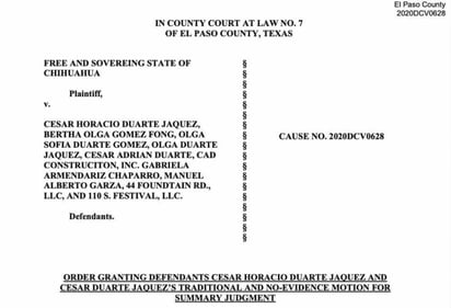 En conferencia de prensa y luego, que el juez Rubén Morales de El Paso, Texas, desestimó la demanda de Javier Corral en su contra por la presunta compra de 50 propiedades con dinero ilícito en dicho país, Duarte, afirmó que ahora hay un "precedente indiscutible de que la falta de aportación de pruebas".