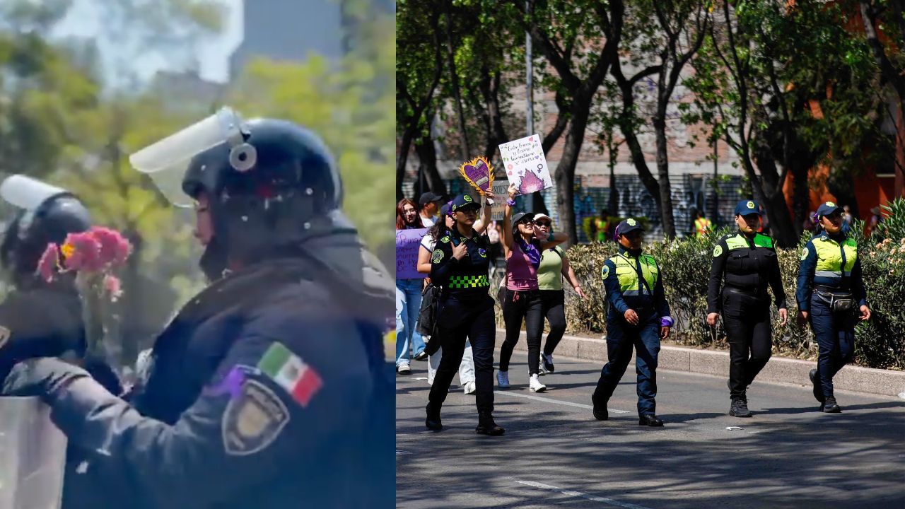 En medio de las movilizaciones por el Día Internacional de la Mujer en la Ciudad de México, un momento llamó la atención durante el desarrollo de la marcha: algunas participantes decidieron entregar flores y dulces a mujeres policías que formaban parte del operativo de seguridad.
