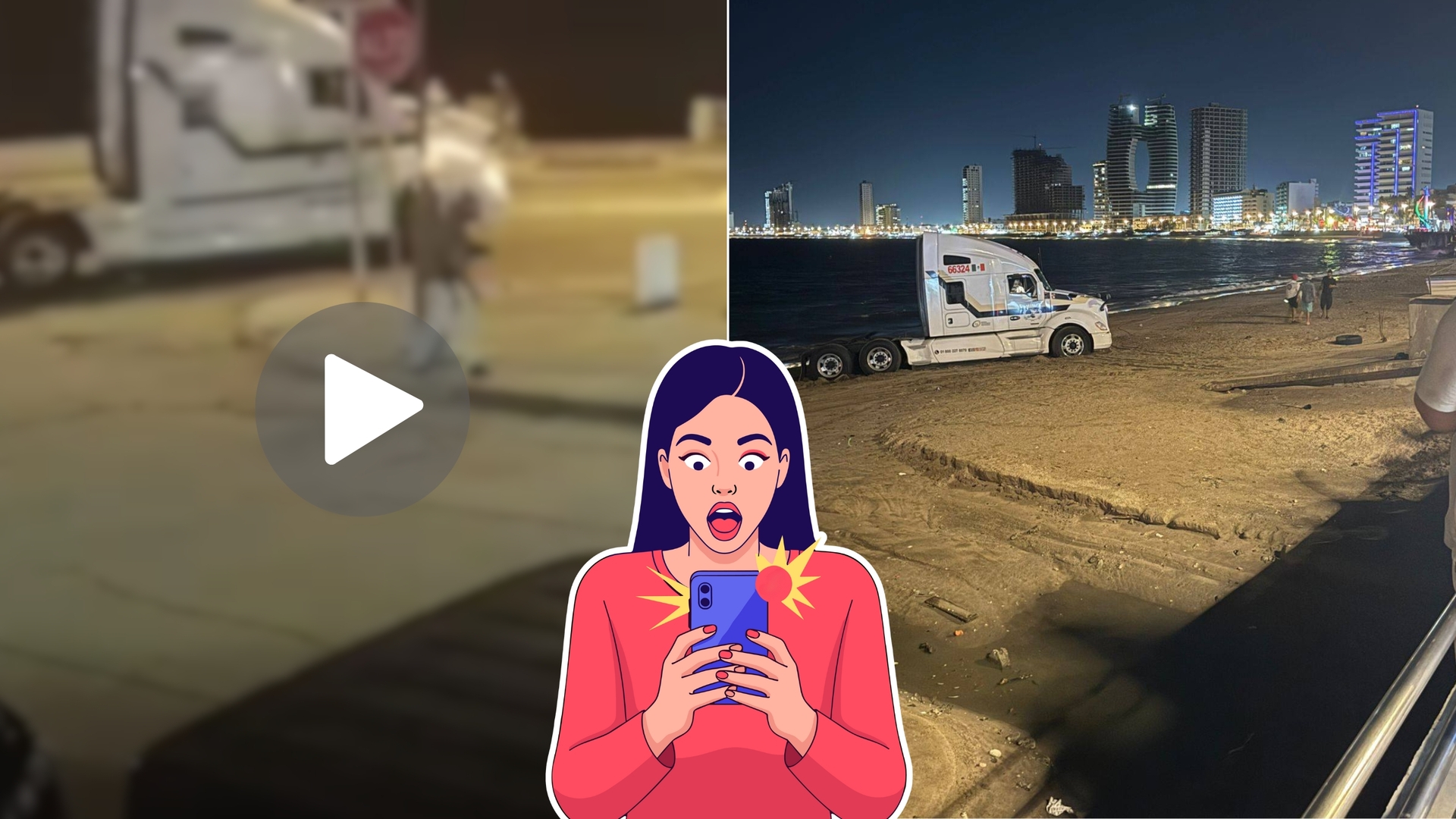 Así fue el momento exacto en el que un tráiler ingresó a playa de Mazatlán | VIDEO