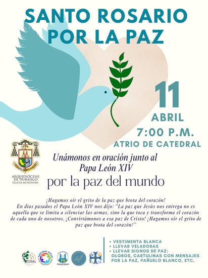 Como El Siglo de Durango informó, se convocó a que este sábado 11 de abril las comunidades católicas, cristianas y “a quienes creen en Dios Creador” se unan en un grito colectivo por la paz.mark