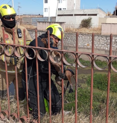 Elementos del Cuerpo de Bomberos de Durango atendieron un reporte ciudadano sobre dos perros que se encontraban atrapados en un canal.