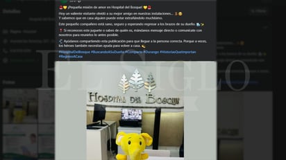 Una nueva misión se ha actividado para los duranguenses, pues durante la noche del 20 de abril el Hospital del Bosque, en Durango capital, publicó la fotografía de un "mejor amigo" olvidado en sus instalaciones.