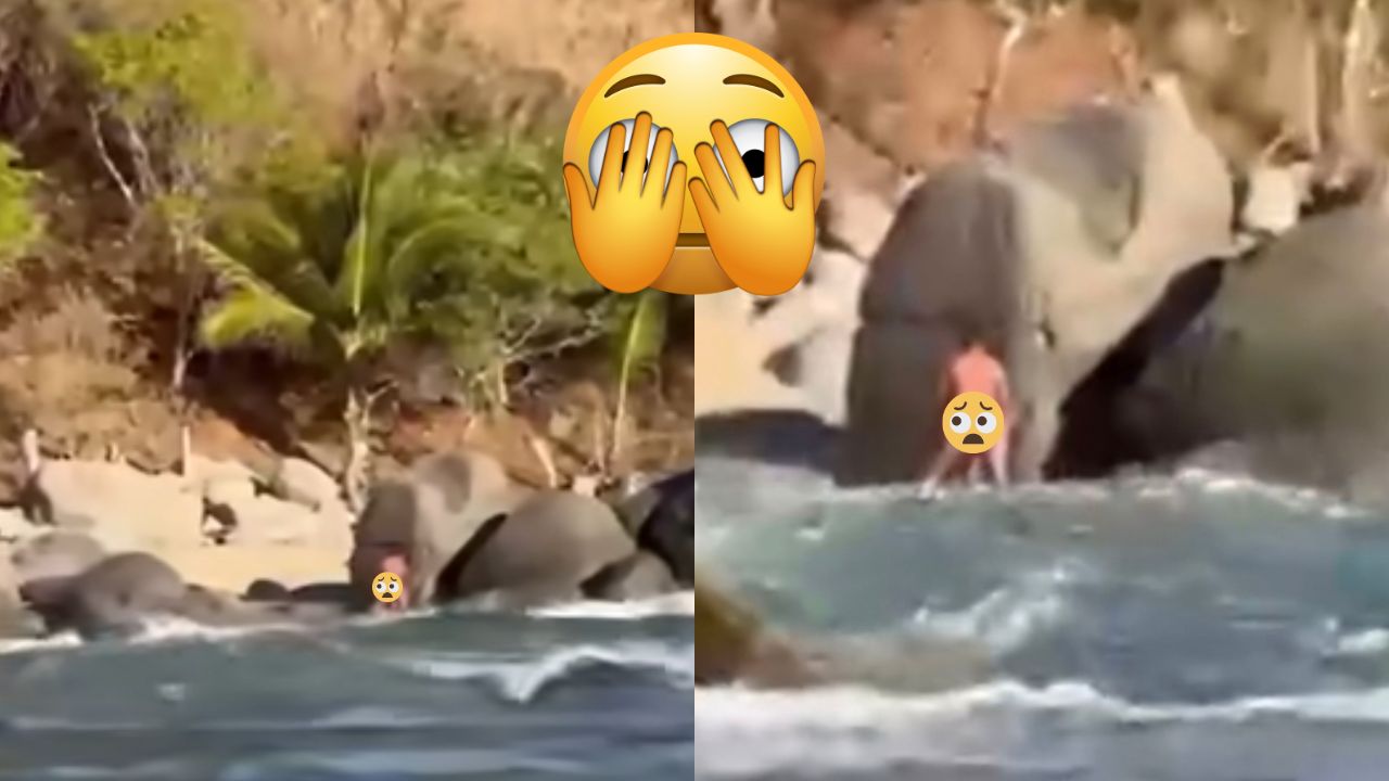 El video fue captado desde una lancha, lugar por el que pasaban unos pescadores que lograron detectar la presencia de la pareja, a orilla de la playa, a un costado de unas rocas.