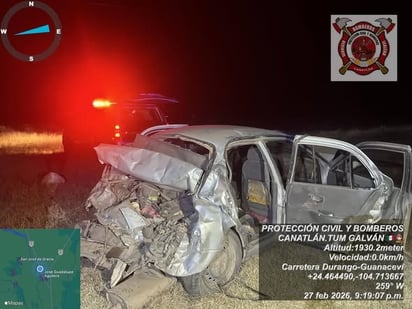 El percance se registró alrededor de las 20:30 horas en la comunidad Santa Lucía, a la altura del punto de verificación ganadera, donde se reportó un choque por alcance entre dos vehículos que circulaban con dirección de Canatlán hacia Durango.