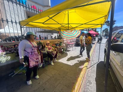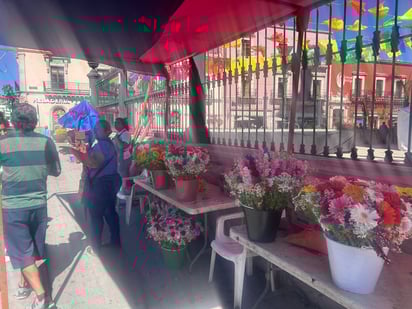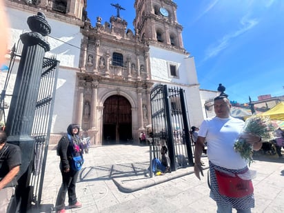 En el marco de la fiesta en honor a San Jorge, comerciantes duranguenses se instalan al exterior de la Catedral ofreciendo flores y artículos religiosos a los fieles que acuden en esta fecha especial.