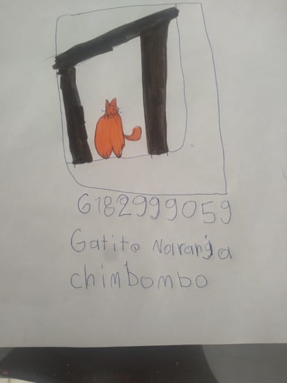 Con lápiz, papel y todo el corazón, la menor decidió crear su propio cartel de búsqueda para “Chimbombo”, su gatito de color crema o jengibre claro, extraviado en la zona de Lomas del Parque, apenas el fin de semana.