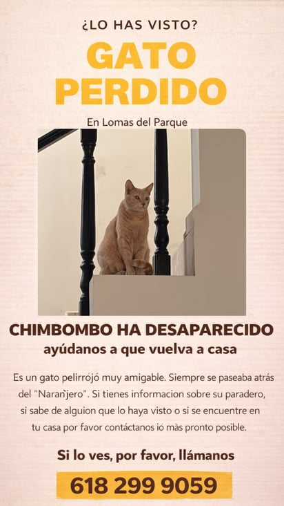 “Chimbombo ha desaparecido, ayúdanos a que vuelva a casa”, se lee en la publicación. La familia también ofrece una recompensa de dos mil pesos a quien lo localice.