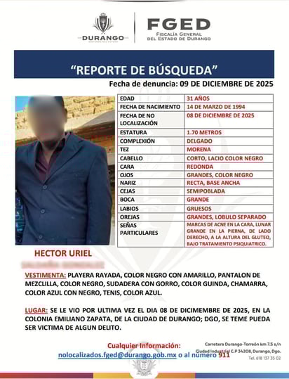 De manera preliminar, las autoridades señalaron que las características físicas y la vestimenta coincidirían con una ficha de búsqueda emitida en diciembre de 2025, por lo que no se descarta que pudiera tratarse de una persona reportada como desaparecida en esas fechas.