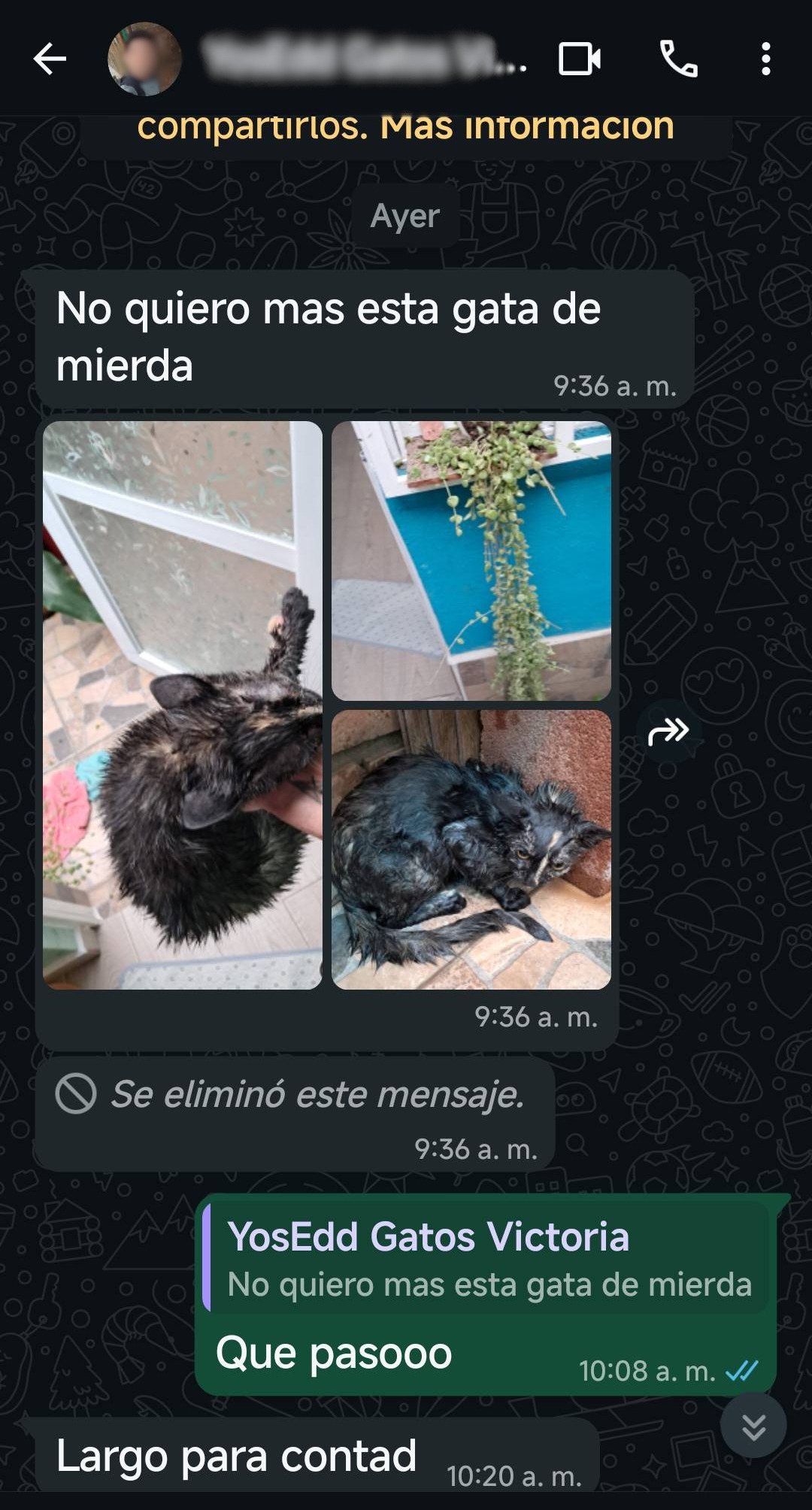 “El motivo de esta publicación es exponer a esta persona para que tengan cuidado y no le vuelvan a entregar a un gatito en adopción”, dijo, además de manifestar su intención de proceder legalmente por maltrato animal.