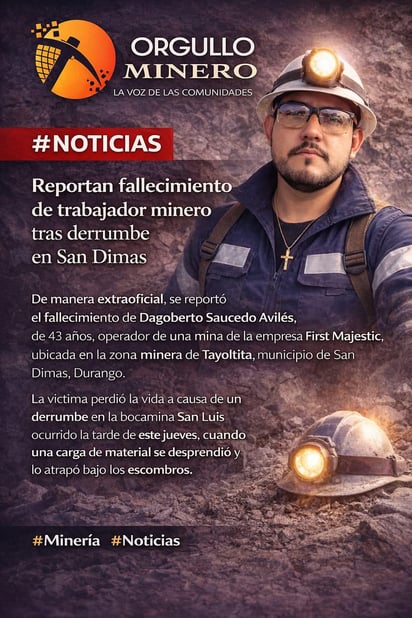 La comunidad minera manifiesta el deseo de que la familia de su compañero encuentre consuelo en medio de esta irreparable pérdida.