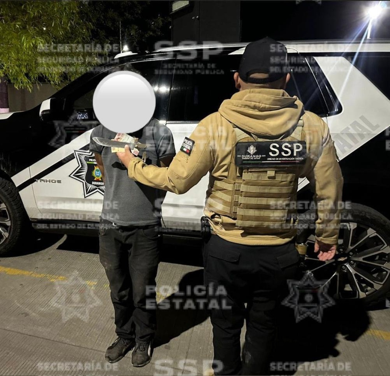 Un presunto ladrón fue detenido por elementos de la Policía Estatal en la colonia Universal, en la ciudad de Durango, luego de ser señalado por cometer un robo con violencia utilizando un arma blanca.